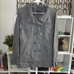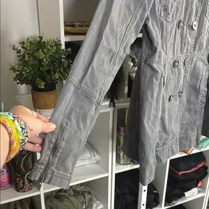 Elevate your style with this chic gray double-breasted jacket. Perfect for any occasion, it offers both comfort and elegance.