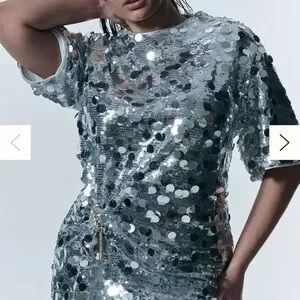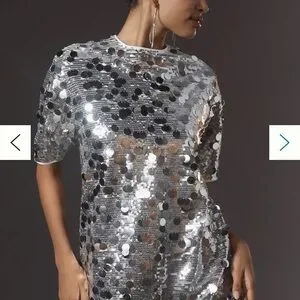 Urban Outfitters Glamorous Silver Sequin Mockneck Mini Dress NWT