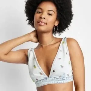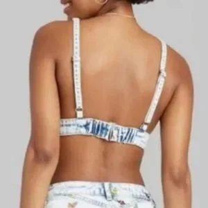 Denim tank top from Wild Fable with a V-neckline and triangle cups. Made of a cotton-rich fabric with spandex. Tailored with a regular fit and a cropped cut. Back strap with hook-and-loop closure and adjustable shoulder straps complete the design. Pair with the matching bottom to complete the look!