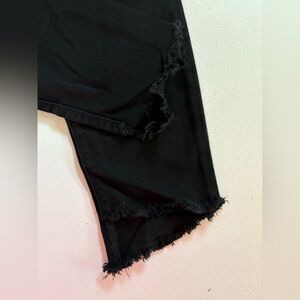 These sleek black skinny jeans from Joe's Jeans offer a modern fit with a smooth finish, perfect for a stylish and versatile look. Asymmetrical frayed hem.
