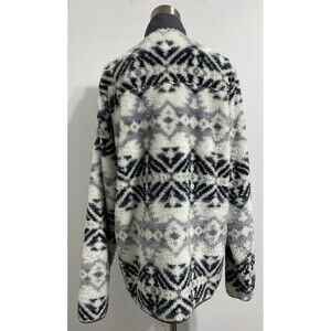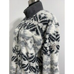 Eddie Bauer Pullover Mens Large Tall White Gray Black Plush Fuzzy Cozy Jacket