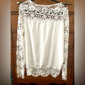 *Please see photos for condition. Some marks and some rough places with lace. Blouse has no tags. Made of poly/cotton lace. Please see photos for measurements since there are no tags.