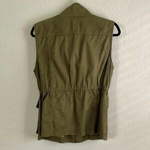 This J. Crew vest in a rich green hue offers a versatile layering option with its military-inspired design. Crafted from durable fabric, it provides a structured silhouette that complements any casual ensemble. Ideal for adding a touch of style to your outerwear collection.