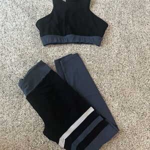 These trendy black and gray two piece active wear/workout set offers comfort and style. Perfect for active days or casual wear. Size L