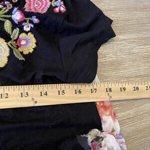 Great Pre-owned Condition Caite Dress Women's Black Sz M Embroidered Floral Short Sleeves Boho Bloomcore