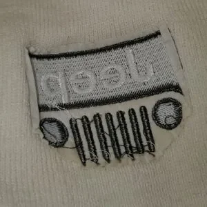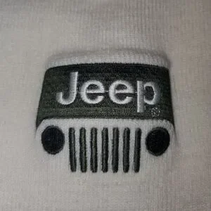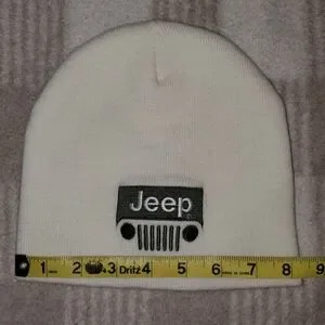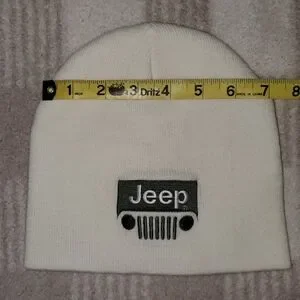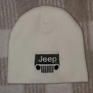 • Small knit beanie with Jeep grill logo embroidered on the front, blank back. Not sure if it's official merchandise or not, not claiming it to be!