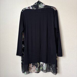 M Made in Italy Silk Floral Sheer Longline Open Front Lightweight Cardigan