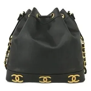 The CHANEL Triple Coco Mark Drawstring Shoulder Bag is a vintage bucket-style handbag that epitomizes timeless elegance. First introduced in the early 1990s, this bag features the iconic interlocking CC logo embossed on the front, complemented by a drawstring closure and chain-link shoulder straps. Crafted from high-quality materials like caviar or lambskin leather, it offers both durability and a luxurious feel.