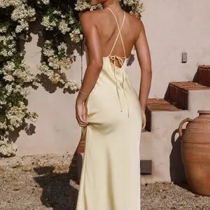 Satin Butter Yellow Maxi Dress