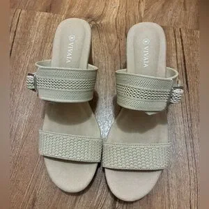NWOT Vivaia Tan Slip-On Sandals with Wedge Heel Adjustable Strap (Sammy)