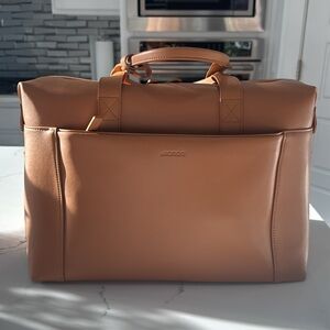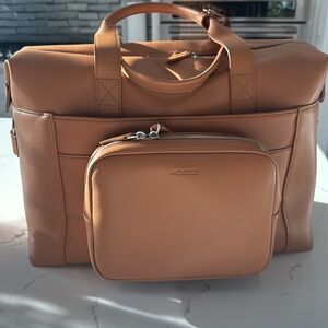 This bag is in perfect condition. Used 1-2x. It’s a beautiful bag, but didn’t end up carrying it as much as I thought I would. More of a backpack carryon gal. Comes with strap. Open to offers.