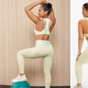 Stylish cream leggings and sport bra. Perfect for workouts. Comfortable fit. Tag was removed for comfortable use, size M