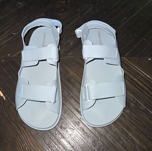 Step into comfort and style with these Lemon sandals, featuring a vibrant blue hue and a sporty, casual design. The sandals boast a chunky platform sole and three wide adjustable velcro straps for a secure fit. With a padded footbed, these sandals offer all-day comfort and a modern, minimalist aesthetic. Size 9 women, by Lemonade