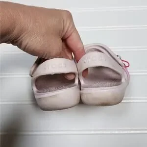 Crocs Kids Keeley Charm Sandals, size 8 Toddler, light pink, hook and loop closure, have some marks on them...see pics, otherwise in very good condition.