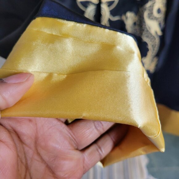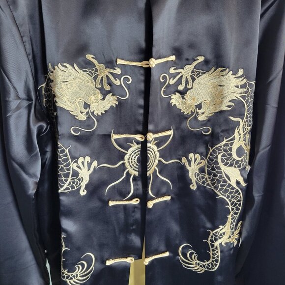 Yuexuan China Unisex Satin Black Jacket with Gold Dragon Design (Size: XL)