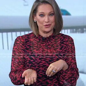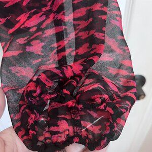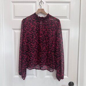 Allison Joy For Evereve XL Red Black Ruffle Blouse Long Sleeve Sheer Top