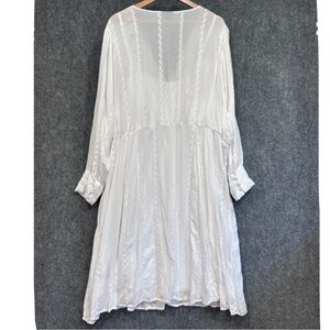 Torrid little white dress embroidered midi 5 challis fabric long sleeve vneck. Includes white under dress, two pieces total. Missing one button at cuff, please see last photo. Could easily use last button on front of dress. Machine wash cold, line dry according to website, dry clean according to tag. 1 lb 5 oz.