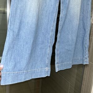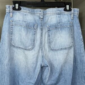 Comfy lightweight pair of jeans from Current/Elliott. The style is “The Culotte” and the color/wash is “Round Up”. These are cropped wide leg jeans with 2 front and 2 back pockets.