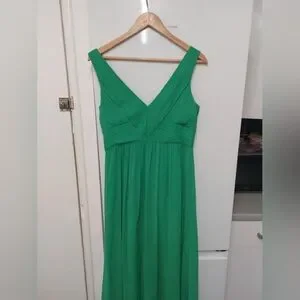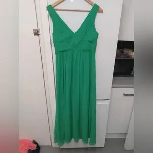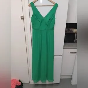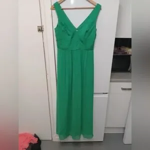 This elegant sleeveless dress features a vibrant green color, perfect for any occasion. Its flowing design offers both comfort and style.