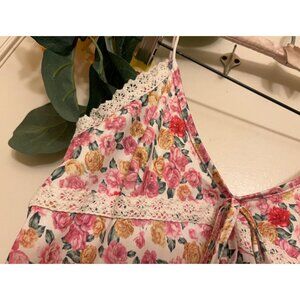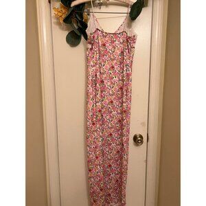 Floral lace Trim/Maxi Slip Dress/Pink/Large