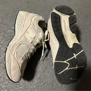 Comfortable New Balance sneakers in beige and off-white. Ideal for everyday wear.