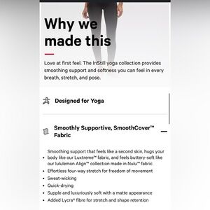 Smoothing support that feels like a second skin, hugs your body like our Luxtreme™ fabric, and feels buttery-soft like our lululemon Align™ collection made in Nulu™ fabric
