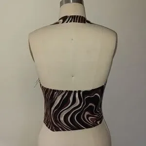 ABSTRACT PRINT HALTER CROP TOP WITH DRAWSTRING. BRAND NEW. NEVER WORN. SIZE LARGE.