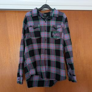 This Disney shirt combines a classic button-down style with a casual flair, featuring a striking black and green color scheme. Perfect for everyday wear, it offers a comfortable fit and timeless design.