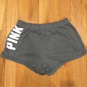 Experience ultimate comfort and style with these PINK Victoria's Secret gray athletic shorts. Crafted from a soft, cotton-like material, they offer a relaxed fit with an elastic waistband, perfect for any workout or casual day. The sporty design is highlighted by the iconic PINK logo along the side, making them a must-have for your activewear collection.