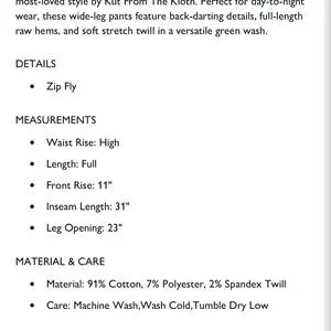These pants from Kut from the Kloth feature a chic wide-leg silhouette in a striking green hue. Crafted with a high-waisted design, they offer a relaxed fit that combines comfort with a modern aesthetic. Perfect for adding a touch of elegance to any casual ensemble.