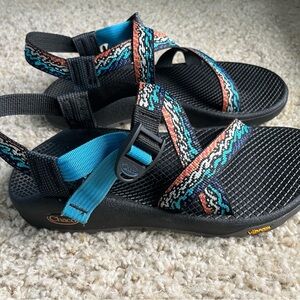 Chaco Black and Blue Sandals with Adjustable Straps