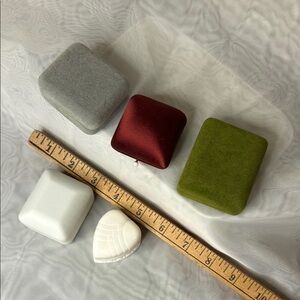 Five elegant jewelry display boxes in various colors. Most are vintage; all in great shape.