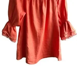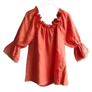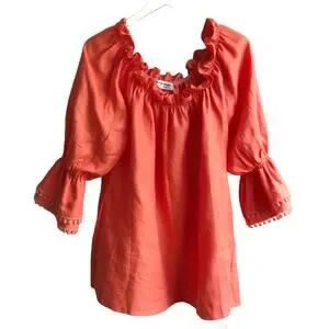 Paris Susan Sutherland Linen Blouse XL Coral Embroidered