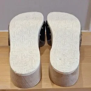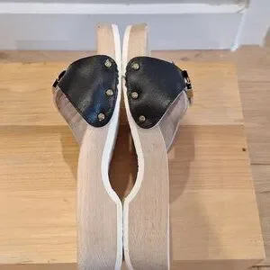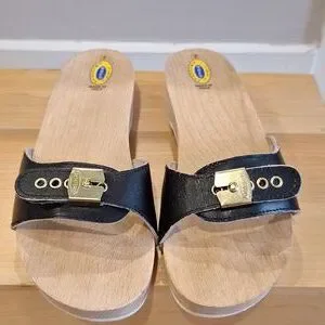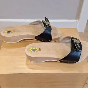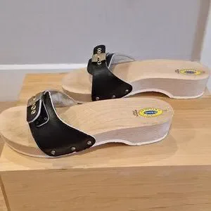 Nearly new vtg Dr Scholls original Black Leather Wood sz 7