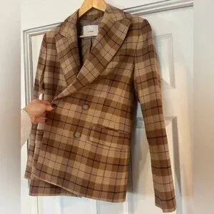 New Aritzia Wilfred Margaux Tan Brown Check Plaid Oxford Double Breasted Blazer