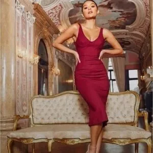 Step out in style with this elegant like new House of CB burgundy sleeveless dress. Perfect for any occasion, this dress offers a flattering fit and timeless appeal. Dress it up for date night, wedding guest, or night out, or dress it down with a leather jacket! Beautiful day to night dress.