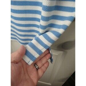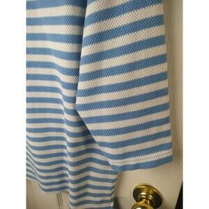 Kenneth Too Woman L Blue White Nautical Striped 3/4 Sleeve Lace Shoulder Casual