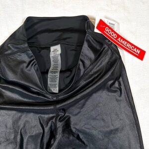 Good American Liquid Cross Over Faux Leather Leggings Black NWT 2 High Rise