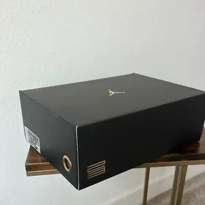 Stylish black box with metallic gold accents. Ideal for Air Jordan 11 Retro storage.