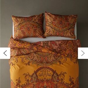 Duvet cover only-no shams! Size is a Full/Queen. Button closures. Enhance your bedroom with this vibrant paisley patterned orange bedding set. The rich colors add warmth and style to any decor.