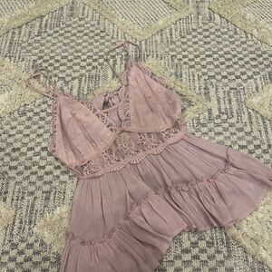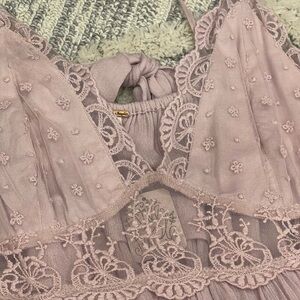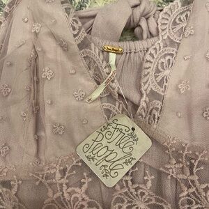 Free People Pillow Talk Lace Ruffle Flowy Lilac Rose Tank Blouse Large NWT