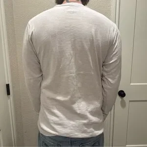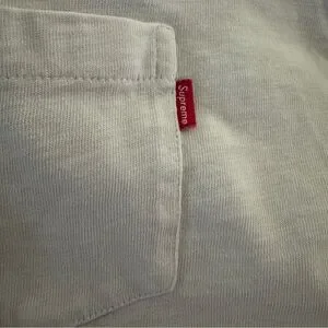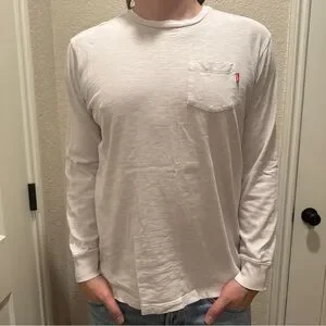 Experience the perfect blend of comfort and style with this Supreme long sleeve tee. Crafted in a crisp white hue, it features a relaxed fit and soft cotton fabric, making it an ideal choice for casual outings. Has a few small holes bottom right as photographed. Price reflected.