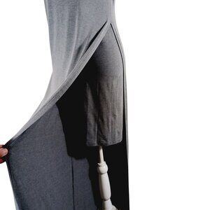 Athleta Gaia Maxi Tank Dress W/ Attached Mini, Side High Slit, Small, Gray, Travel. T Shirt Dress, Heather Gray with NATURAL COLOR VARIATIONS IN FABRIC. In very good pre-owned condition. Comfy, Stylish and modern. Monochromatic, easy to style.