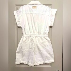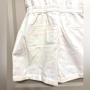 NWOT POL #17 One Piece Jean Jumpsuit Shorts Utility Romper, WHITE and KHAKI - M