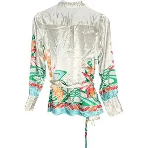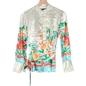 Hale Bob Floral Satin Blouse Size XS Removable Belt Tropical