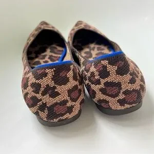 Step into elegance with Rothy's pointed-toe flats, showcasing a chic leopard print. These slip-on shoes feature a sleek silhouette and a low-cut vamp, perfect for versatile styling. Super comfortable and machine washable.