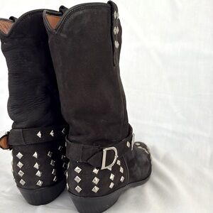 Donald J. Pliner Vero Cuoio Black Suede Silver Studded Western Boots Women’s 7