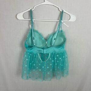 Padded Babydoll Cropped Mesh Lace Dreamy Fairycore Camisole in Blue/ Teal