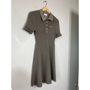 NEW Ganni Melange Collar Embroidered Short-Sleeve Knit Mini Dress Safari Size: M