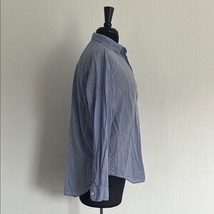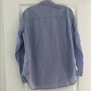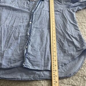 Stylish blue button-up shirt with a subtle pattern. Perfect for casual or formal occasions